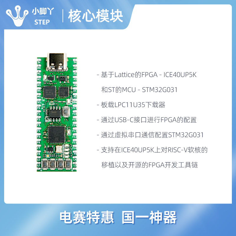 如何快速掌握這三項(xiàng)技能呢?我們思德普推出一個(gè)管腳兼容小腳丫FPGA的新款MCU +FPGA的核心模塊,采用帶有郵票孔的DIP40封裝,方便直接插在面包板上使用、插在DIP40的擴(kuò)展板上,或者直接貼焊在自己畫(huà)的板子上。 這個(gè)核心板上用的是專為蘋(píng)果手機(jī)設(shè)計(jì)的一顆超低功耗但內(nèi)部功能強(qiáng)大,尤其是內(nèi)部存儲(chǔ)資源很大、兼有DSP功能的FPGA - iCE40UP5K,單片機(jī)采用的是ST最近兩年主推的G系列微控制器STM32G031,這二者的組合不僅方便初學(xué)者同時(shí)擁有