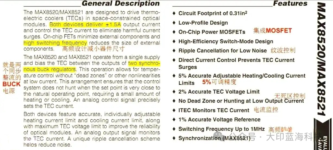 那么,如何才能有效地驅動TEC以實現精確的溫度控制呢?讓我們以一款集成了TEC控制芯片的產品為例,來探討一下TEC的驅動控制原理。這款產品采用的是 MAX8520集成芯片,其驅動電流為1.5A,驅動方式與電機的驅動頗為相似。