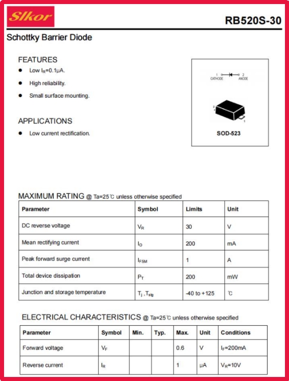 薩科微Slkor肖特基二極管RB520S-30
