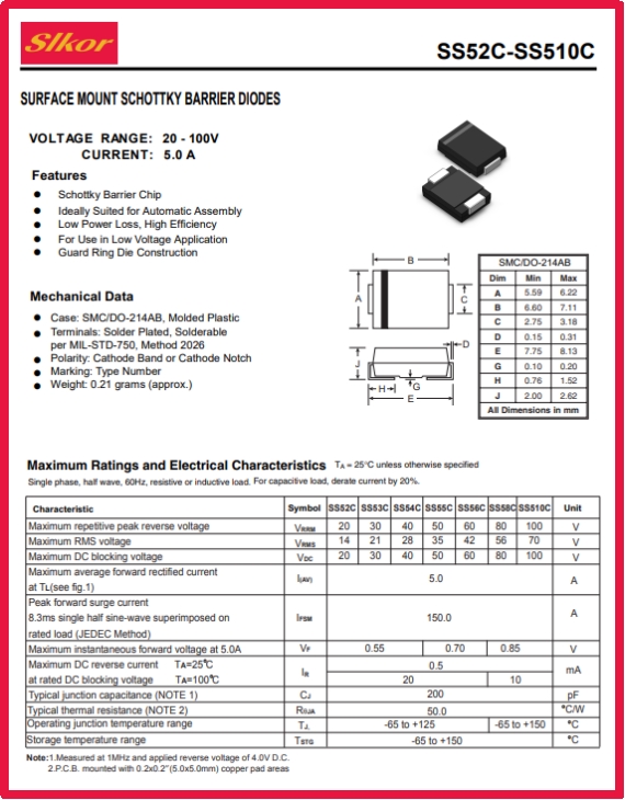薩科微Slkor肖特基二極管SS56C規(guī)格書(shū)