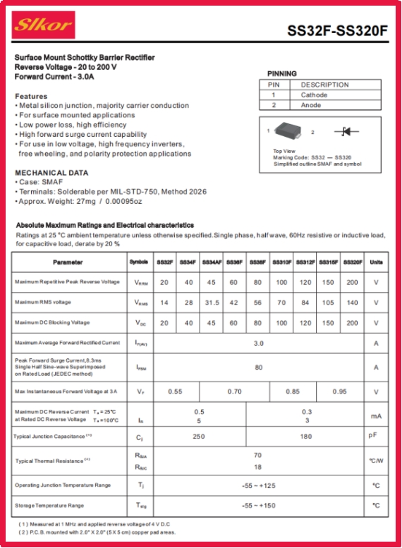 在當今科技飛速發展的時代,電子產品如繁星般點綴著我們的生活,從日常使用的手機、平板電腦,到照亮城市的LED照明設備,無一不依賴著精密的電子元件來穩定運行。而在這些元件中,有一個看似小巧卻功能強大的存在——slkor薩科微SS34F肖特基二極管,它正以獨特的魅力,在電子領域中綻放光彩。