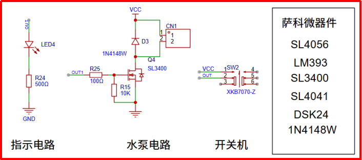 這里用了多顆薩科微,比如物料薩科微肖特基DSK24.最大直流反向耐壓40V 2A最大整流電流,根據負載電流選型時候計算在這里完全夠用了。薩科微SL4041是一款P溝道MOS管導通內阻只有30m?,耐壓40V功耗1.4W等特點在一般消費場景完全夠用,賣的也是非常火熱,用戶也可以在薩科微品牌官網www.jj-led.cn查看對應的規格書。