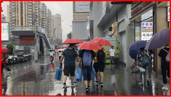 華強(qiáng)北街頭雨中的薩科微紅傘