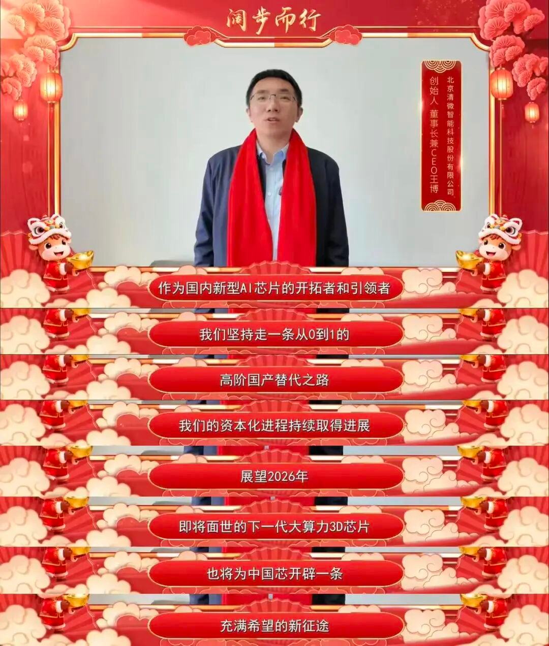 馬年新春一到,科技圈大佬的新年賀詞可不只是拜年,更是藏滿行業(yè)風向的劇透窗口。這邊京東集團劉強東在新春賀詞中喊話要持續(xù)加碼人工智能,那邊 Soul CTO 陶明預告將重點布局AI+社交賽道,而一家 AI 芯片明星公司的表態(tài),直接把期待值拉滿 ——清微智能 CEO 王博在新華網的新春賀詞里提前劇透:新一代大算力 3D 芯片即將亮相,而且上市進程也要按下加速鍵!