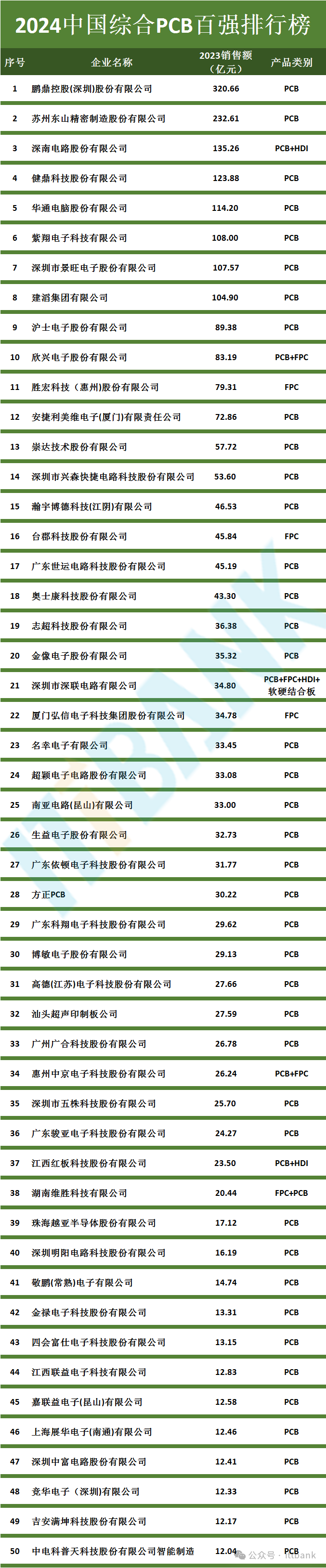 中國PCB百強(qiáng)(TOP 100)排行榜