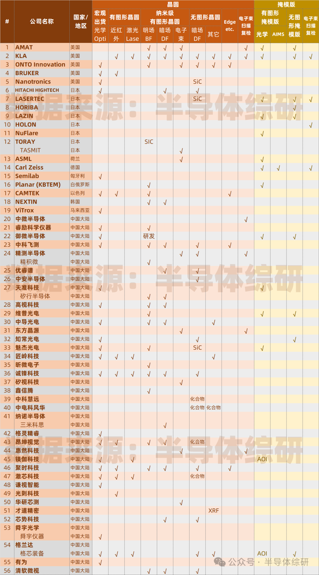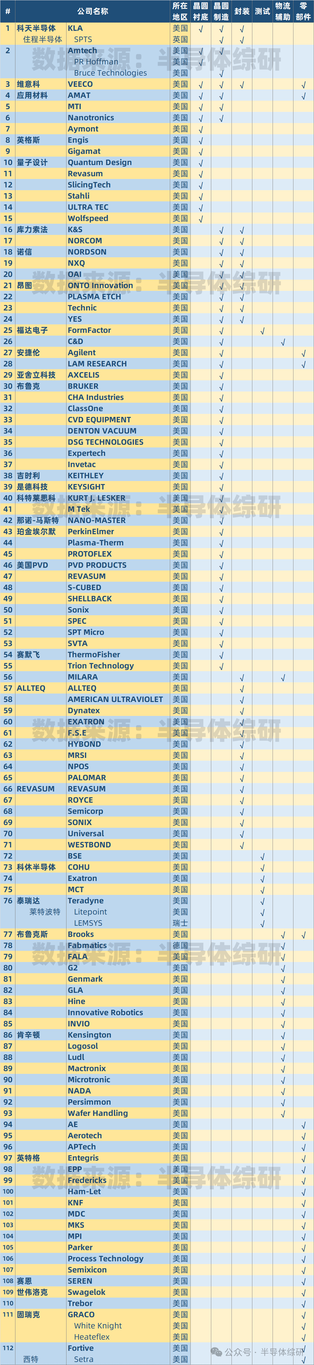 最近因為眾所周知的原因,國內(nèi)半導體供應鏈安全的話題又在圈子內(nèi)外變得異常熱絡起來 今天在公眾號上,我也趁熱度做一個美國半導體設備供應鏈的廠商盤點,讓大家理解一下美國作為全球第一大半導體設備供應國的目前的資源和能力 如果這篇文章讀者反響好,我后續(xù)考慮再做一系列材料、EDA/IP、CIM系統(tǒng)的美國供應鏈統(tǒng)計,供大家參考 如果大家發(fā)現(xiàn)任何問題,也歡迎私信和我聯(lián)系。謝謝了 注)某些非美的公司被美國公司收購了,所以我特意標注了每家公司的所在地信息,請理解 免責聲明:本文采