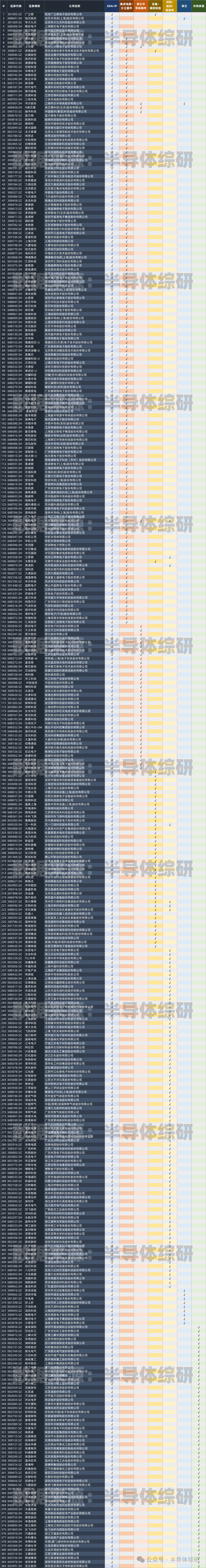 384家A股半導體行業(yè)上市公司統(tǒng)計 -- 最新版